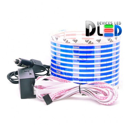 Эквалайзер приклеивается на заднее стекло автомобиля на липкий слой, питание подключается в прикуриватель на 12В. Работает от автомагнитолы, регулирует громкость музыки. В комплекте идет блок управления EQ, через который можно настроить скорость передвижения ступеней эквалайзера.